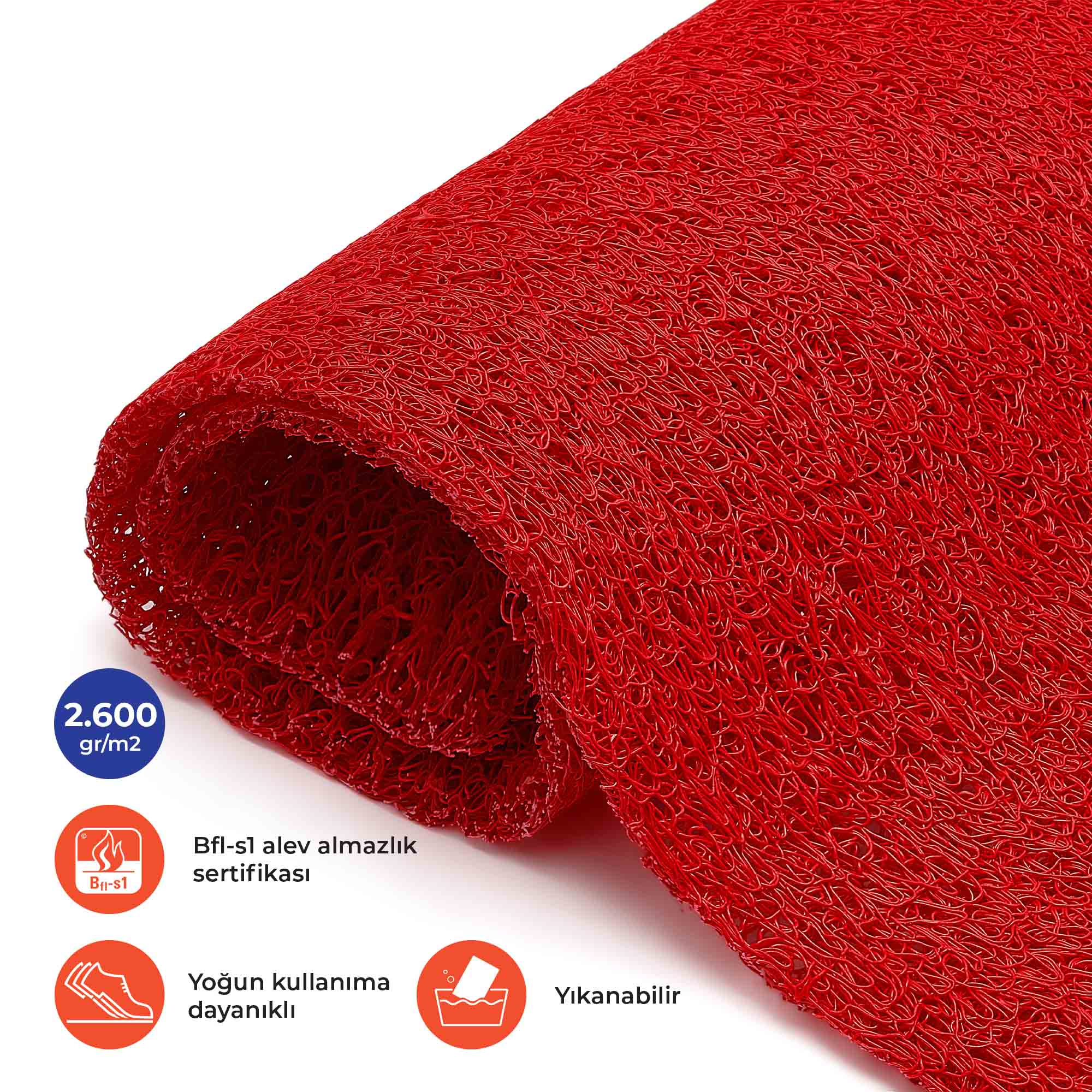 Kıvırcık Paspas Yolluk, giriş alanları için geliştirilmiş dayanıklı ve estetik bir çözümdür. 14 mm kalınlığı ve 2600 gr/m² yoğunluğu sayesinde yoğun ayak trafiğine karşı uzun ömürlü performans sunar. Kir, toz ve nemi hapsederek iç mekânlara taşınmasını önler; kolay temizlenebilir yapısıyla pratik kullanım sağlar. Turkuaz, Yeşil, Mavi, Kırmızı ve Gri renk seçenekleri ile hem işlevsel hem de dekoratif bir görünüm kazandırır.